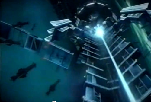 I had the concept of building a level around an orbital elevator, sometimes depicted in games as a giant high-powered, high-speed mechanized cargo elevator above the world heading to a space station of base. With this in mind, symmetry is a large participant here, but I'm not the biggest fan of just flat maps, so I want to plan at multiple times through the combat, the elevator's central circle will break off it's bindings and fall behind the outer ring (which has the wheels rolling up the tracks on the back), and thus become lowered, changing the play field. I'd also like to have a theatrical intro to the level having the players ride smaller glass cylinder elevators up to the main one and boarding it before the match starts.